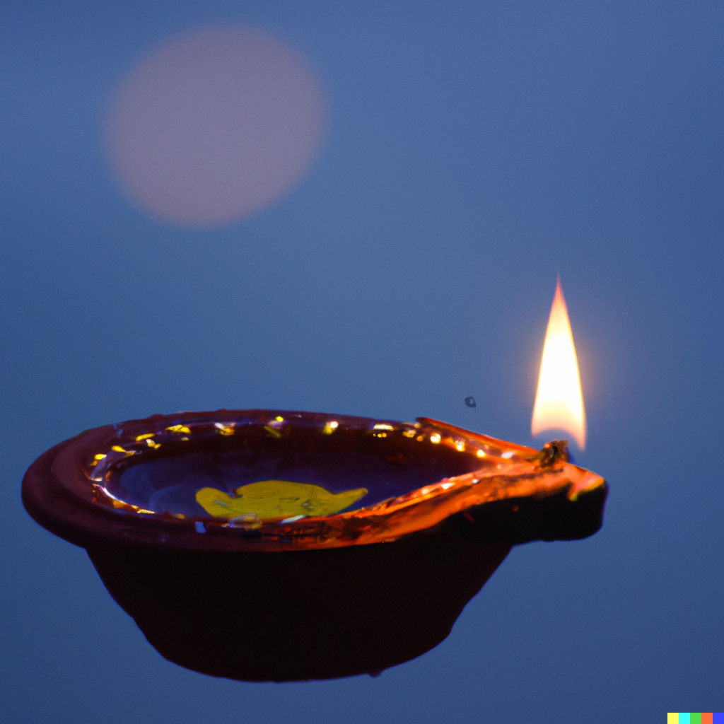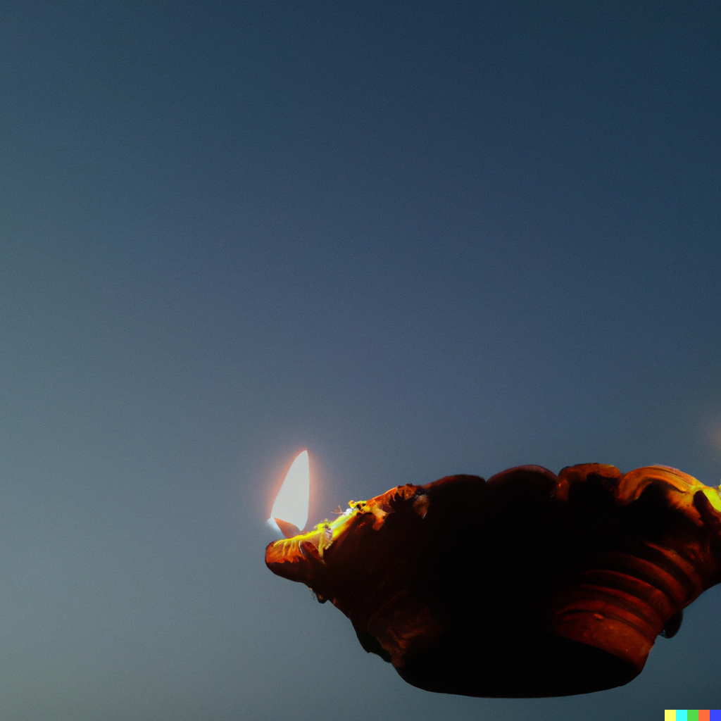 While another entry I tested was “diyas in sky”, the following are the images generated from the product. These images seem to be realistic, but if you look closer one sees they are generated pixel by pixel, as well.