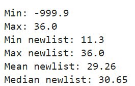 So the code reads a column 3A form the data, the first column, computes mean, min, max, median and mode of this column. A list is made with missing values represented as large negative numbers replaced by mean of the value. You should try median and mode as well, to check for accuracies of the system.