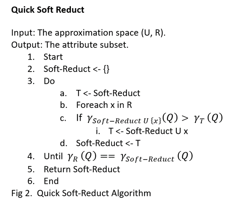 The Quick Reduct Algorithm based on the Soft Rough Set is given in Figure 2 below.