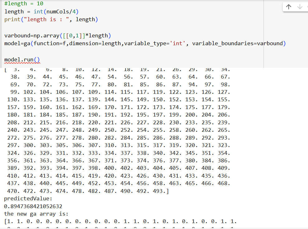 model=ga(function=f,dimension=length,variable_type='int', variable_boundaries=varbound)