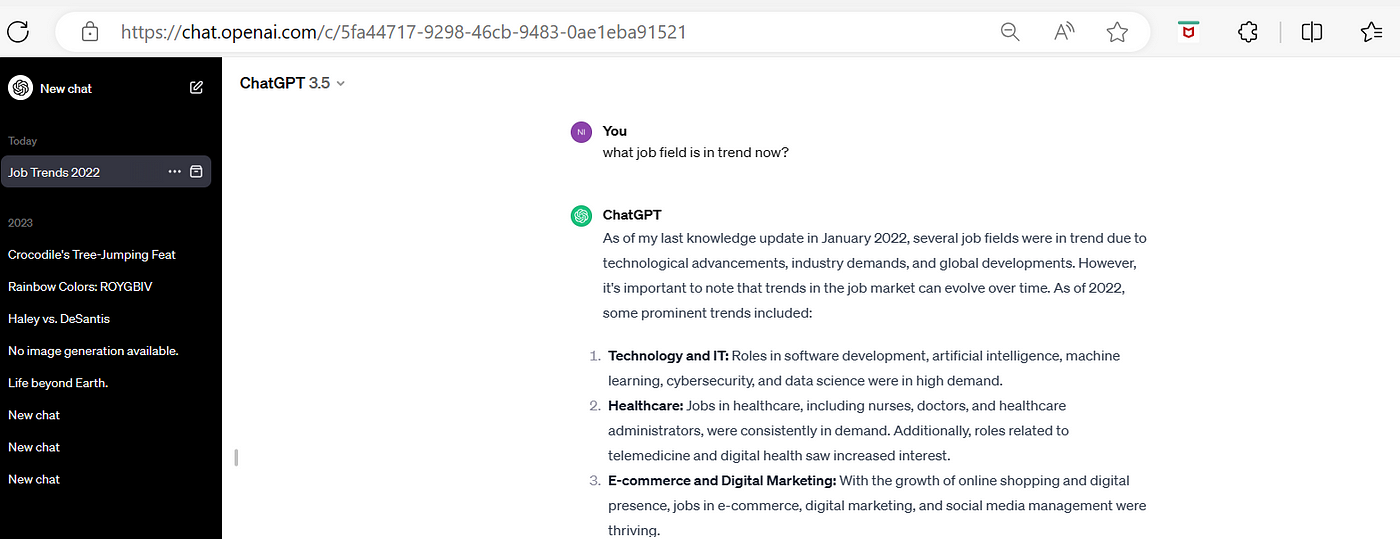 Here, are some glimpse of solutions provide by chatGPT and Google-Gemini, for question “What job field is in trend now?”