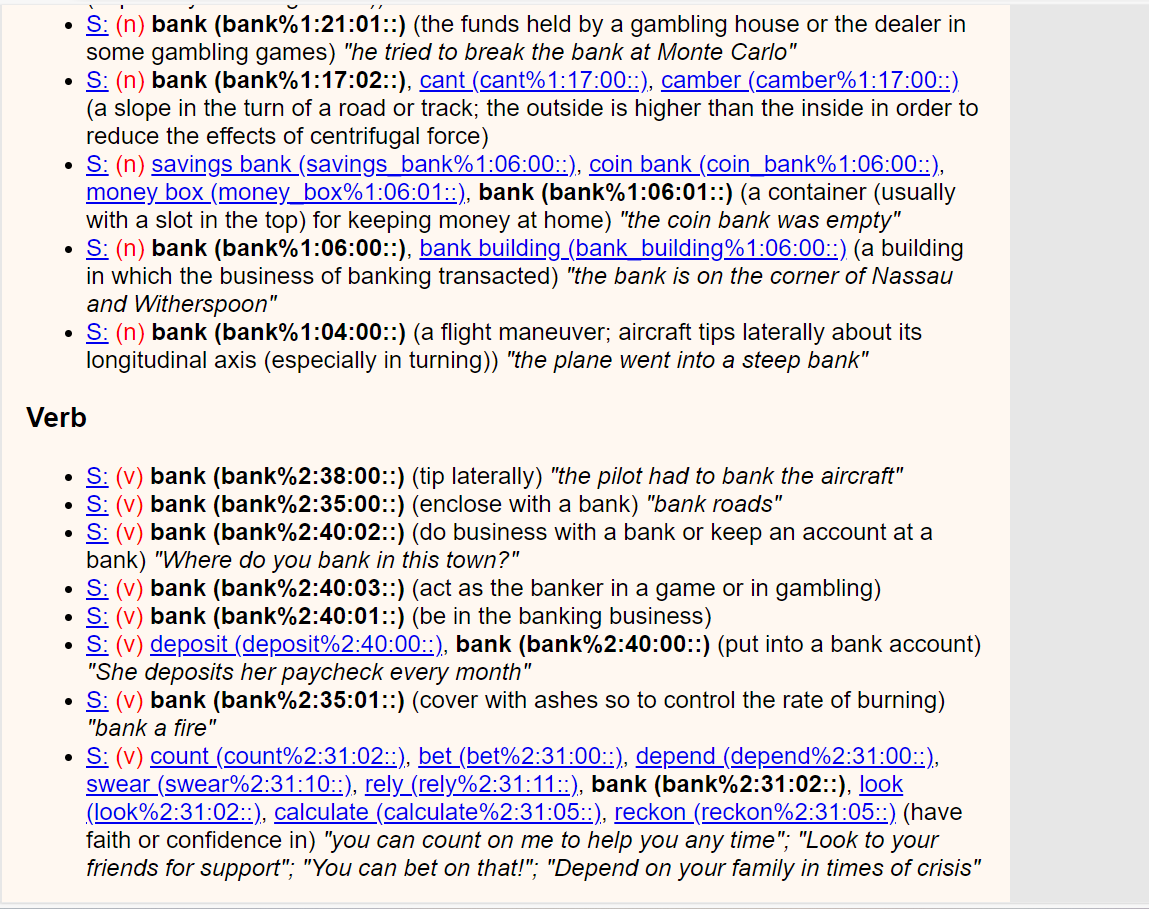 Now look at wordnet sense online on wordnet API: