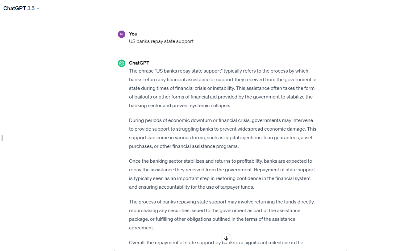 Let us do a search on chatGPT about this sentence: “US banks repay state support”