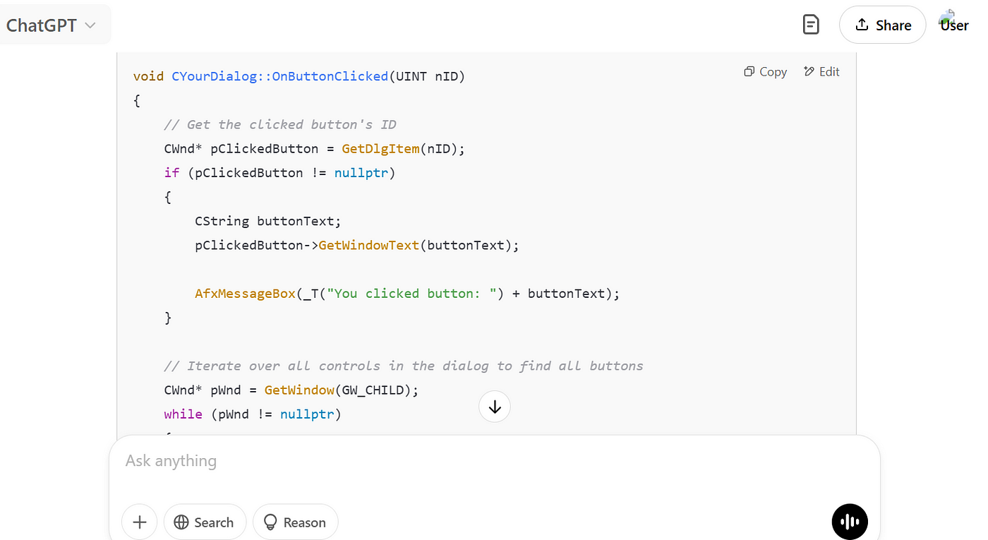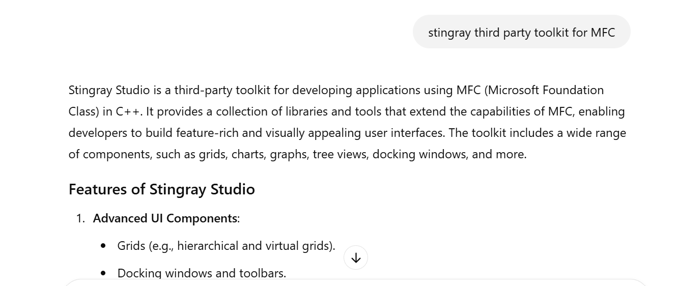 — So, we give chatGPT from openAI, some questions to code in VC++. MFC or Microsoft Foundation Class, these are typically used in traditional with UI based applications, one example being CAD (Computer Aided Design).