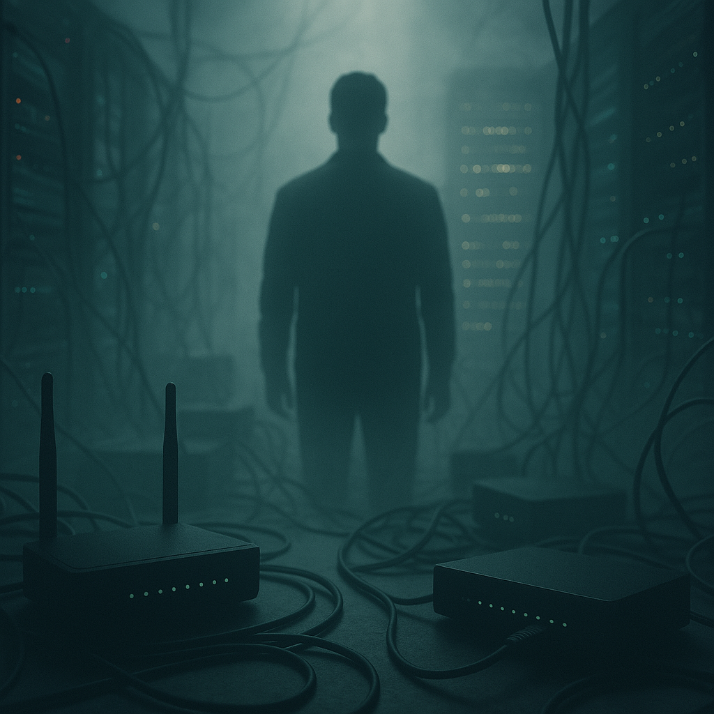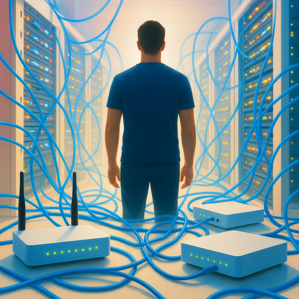 This is your virtual avatar, existing in wires, models, routers, and data centers. It exists; you exist there through your information. This shows your AI avatar talking to other AI avatars of yours via wired connections, if you allow your AI avatars to communicate with each other.