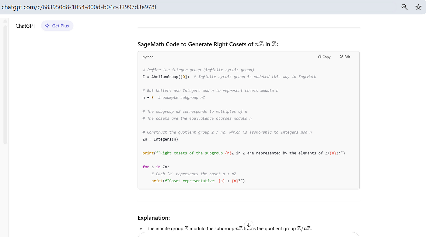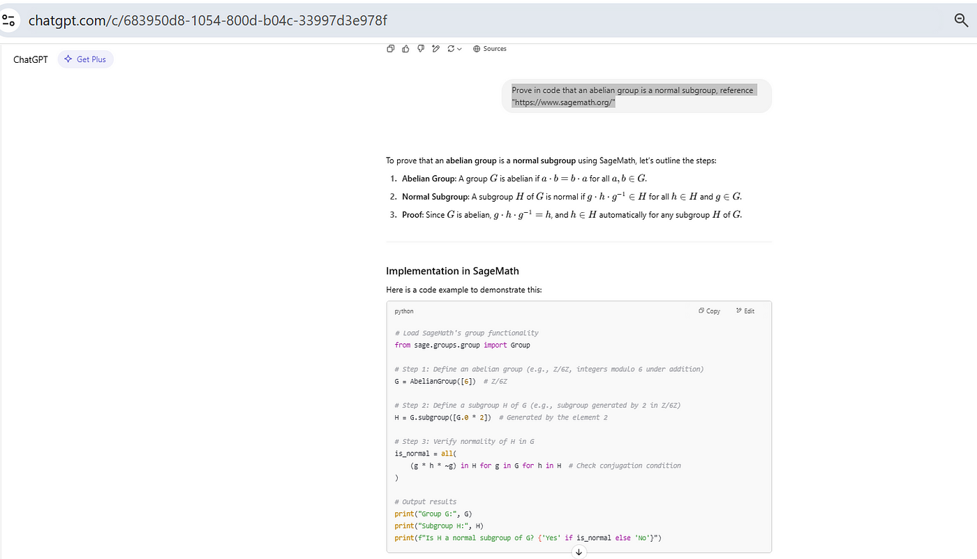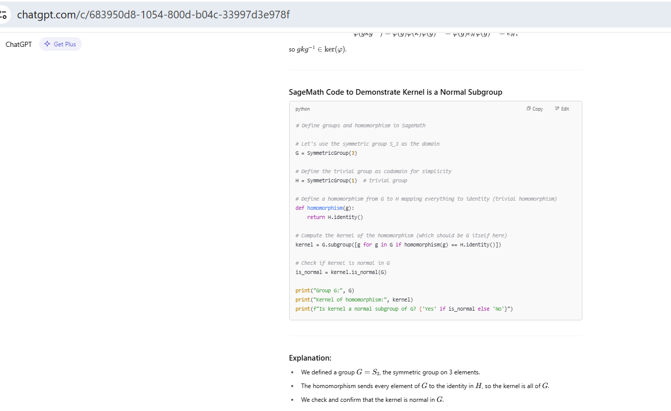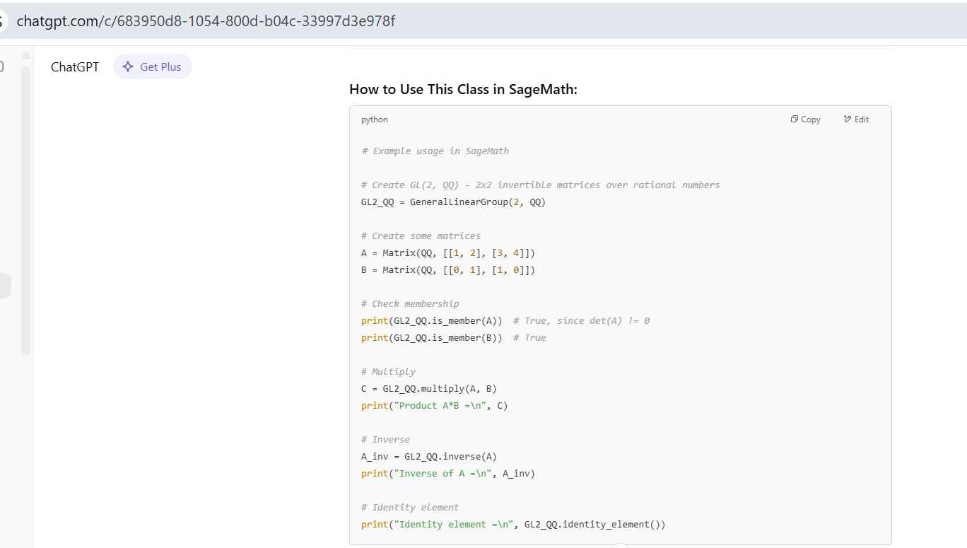 Some of the things I tried on SageMaths and ChatGPT. No need to install SageMaths. Try even new things. But how to run these, and how to verify codes, ChatGPT can you answer? I dont want to install it on system. Any web interface to run these would be help.
