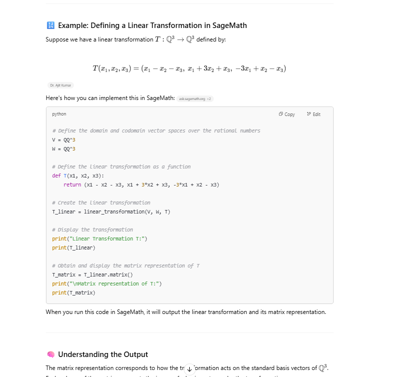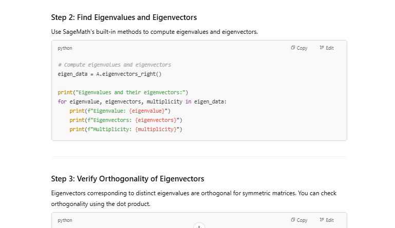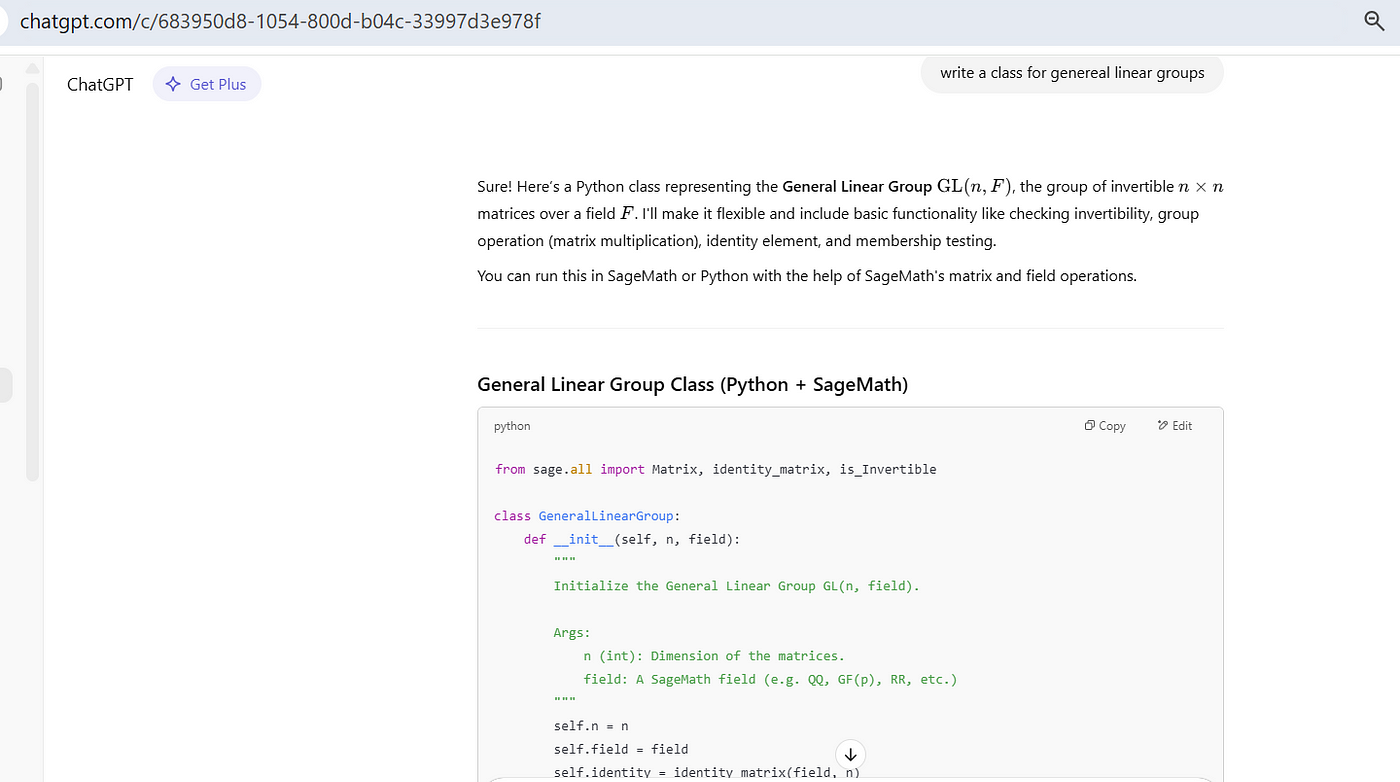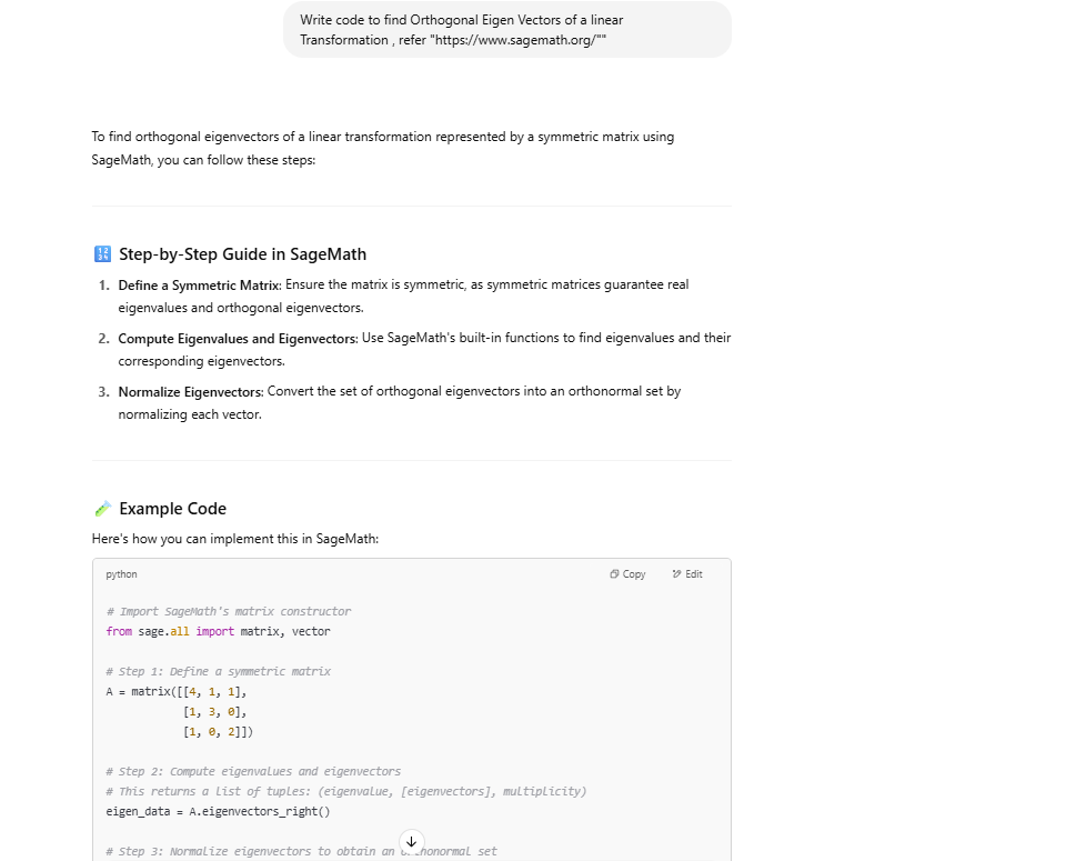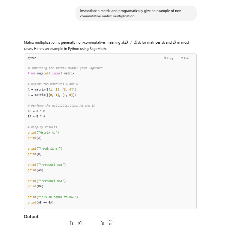 Some of the things I tried on SageMaths and ChatGPT. No need to install SageMaths. Try even new things. But how to run these, and how to verify codes, ChatGPT can you answer? I dont want to install it on system. Any web interface to run these would be help.