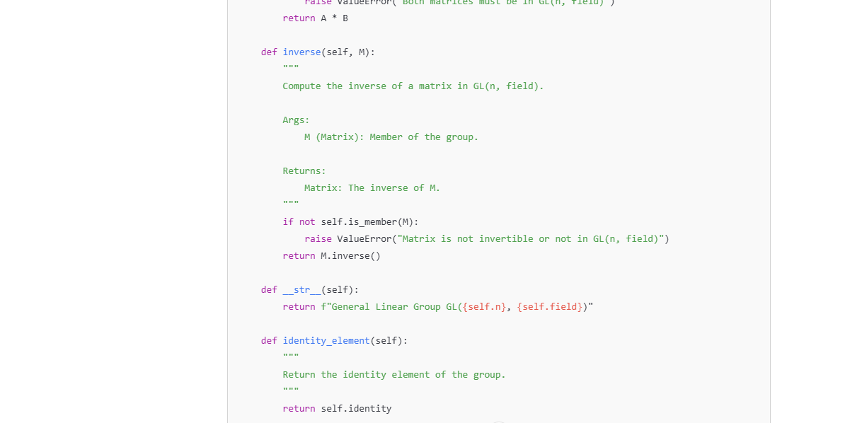 Write a class for general linear groups