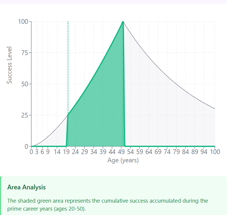 This area represents the cumulative impact of your most productive years. It’s not just about peak success at 50, but the sustained high performance throughout your career. A larger area indicates more consistent success over time, which often translates to greater lifetime achievements, wealth accumulation, and professional legacy.