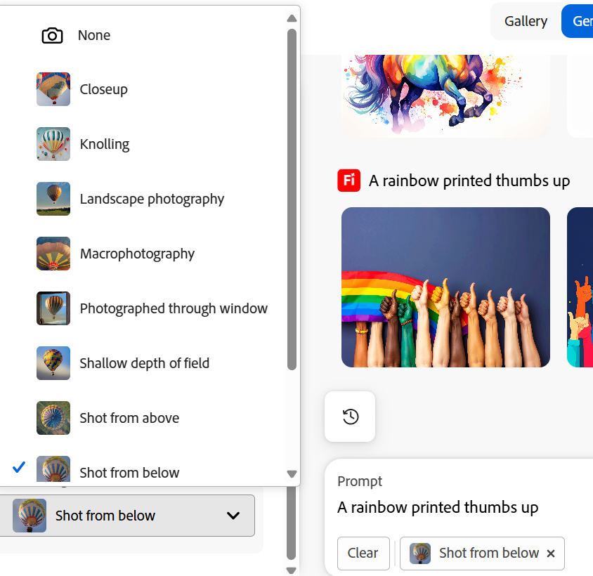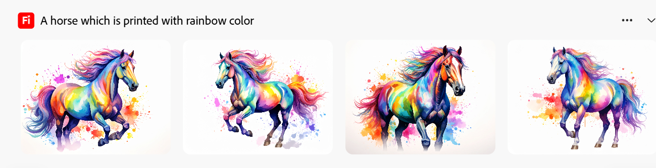 The first prompt I gave to Firefly was, “A rainbow coloured horse flying near a rainbow over a field”