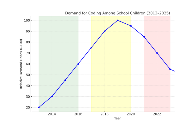 Yes, it wasn’t just children; many adults left their jobs to enter coding, as it was a high-demand job during the decade of 2013 to 2023.