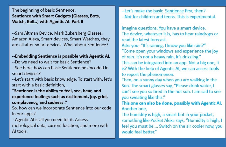 With more future smart devices, earrings, pendants, pens, and mobile phones, can’t you embed Sentience in them? It’s possible with Agentic AI.