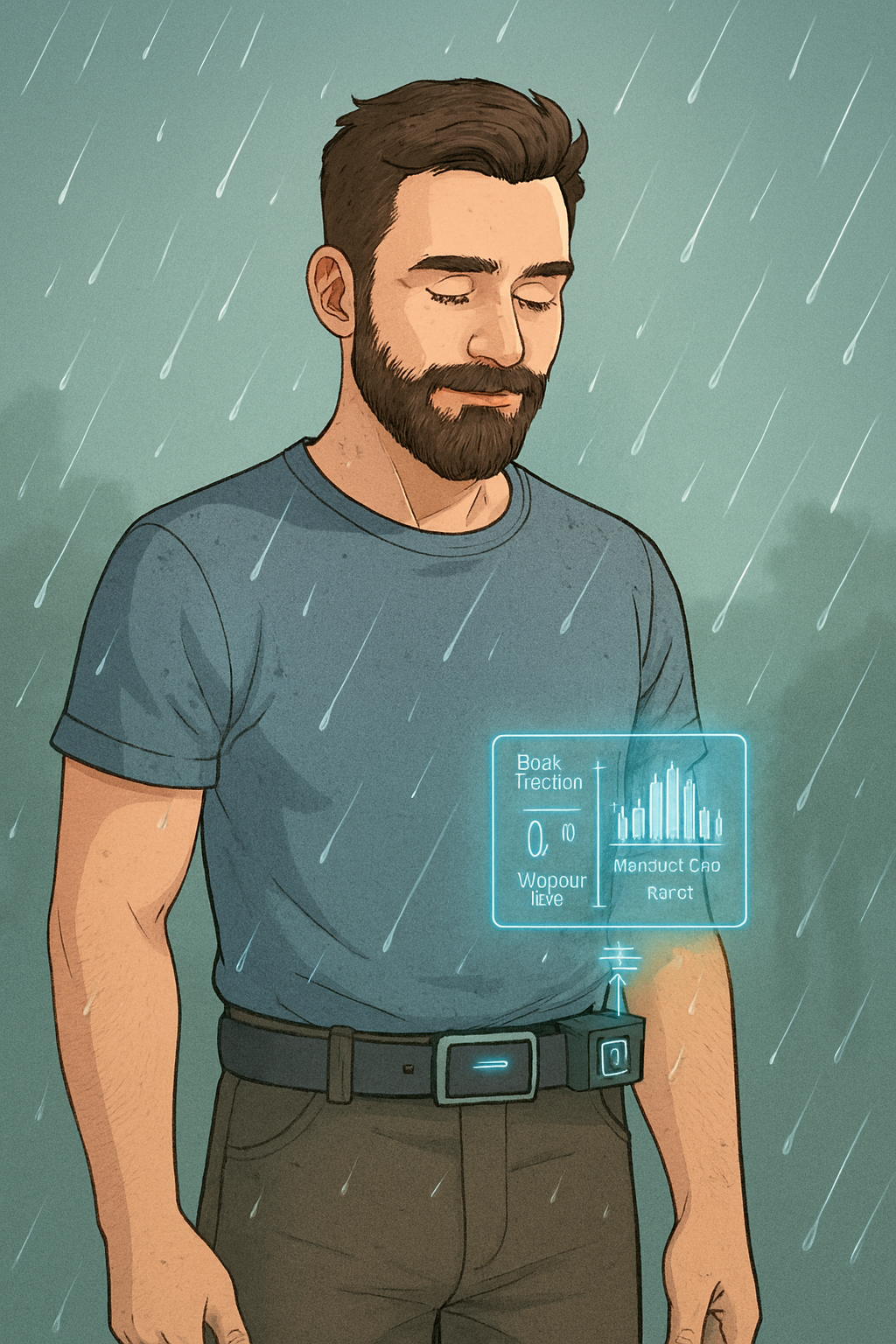 The smart glasses say, “Please drink water, I can’t see you so tired in the hot sun. I am sad to see you sweating like this.”