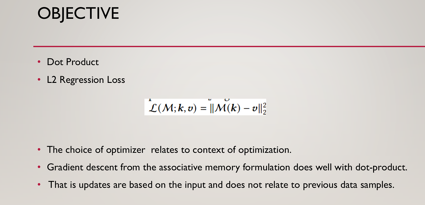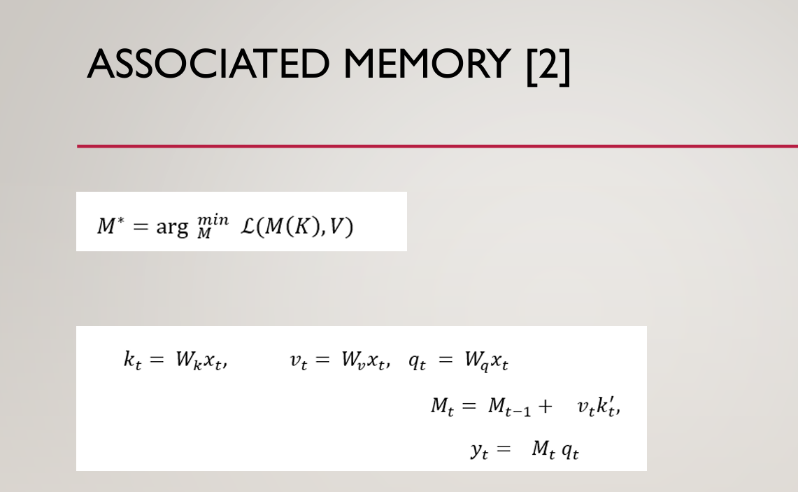 The same thing, but in key-value-based terminologies of associated memories: